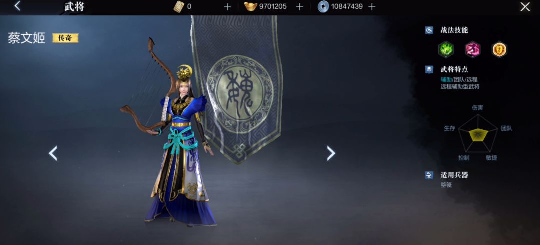 蔡文姬的专属战魂以回复、增伤与控制为主。
