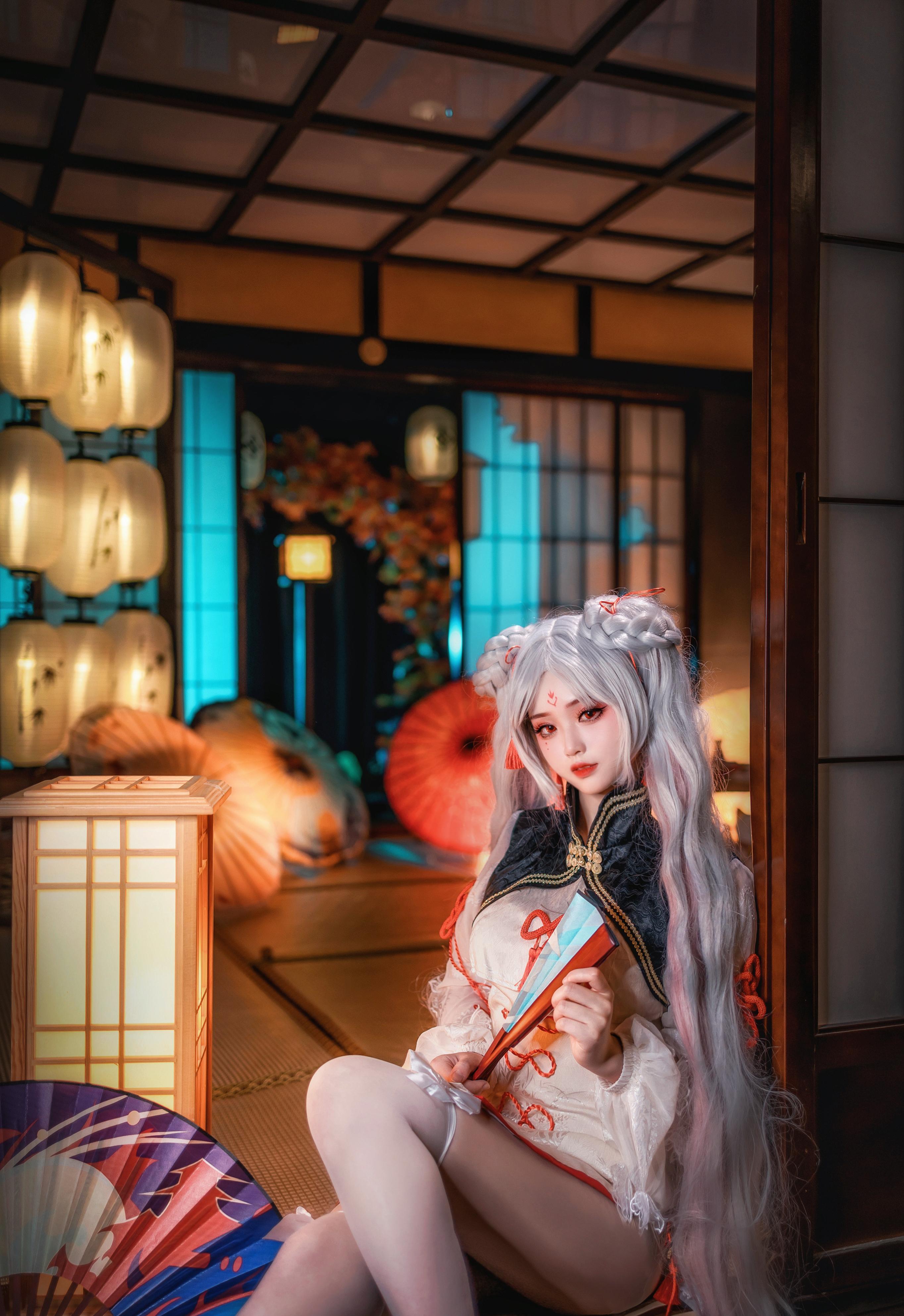 今天给大家分享的Cosplay作品cos的原型是来自手游《阴阳师》中的不知火·魔都绮梦形象