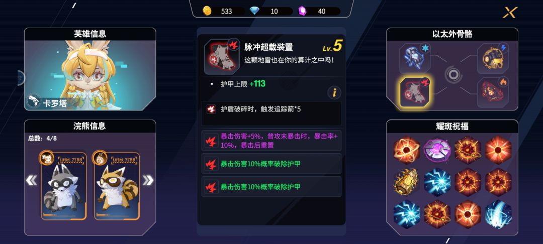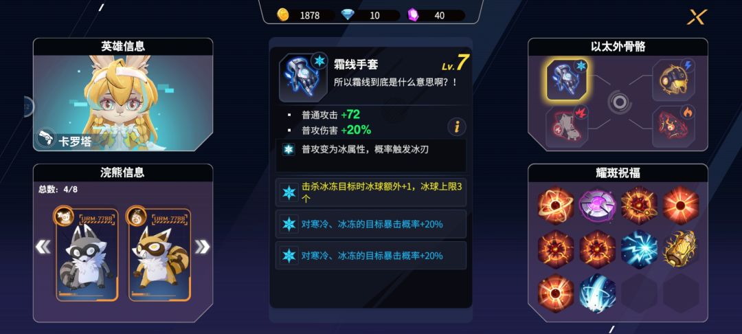1.选择浣熊时(注意留意一下商店哦),主要选择炮台浣熊(每只增加2%暴击率和5攻击力,最多8只16%暴击率和40攻击力,后续计算暴击率取4只的数值:9%暴击率)。
