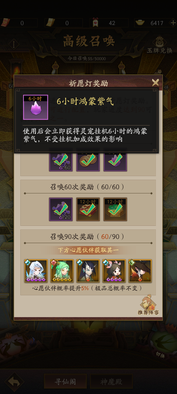 5.寻仙阁和神魔殿抽奖