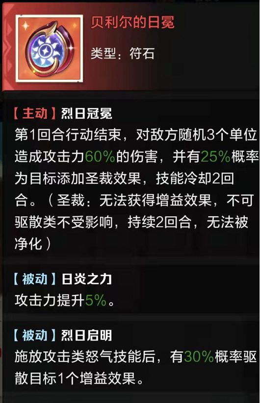 可以大致分类为输出型和生存型两种符石,都有主动效果、属性提升、和被动效果。
