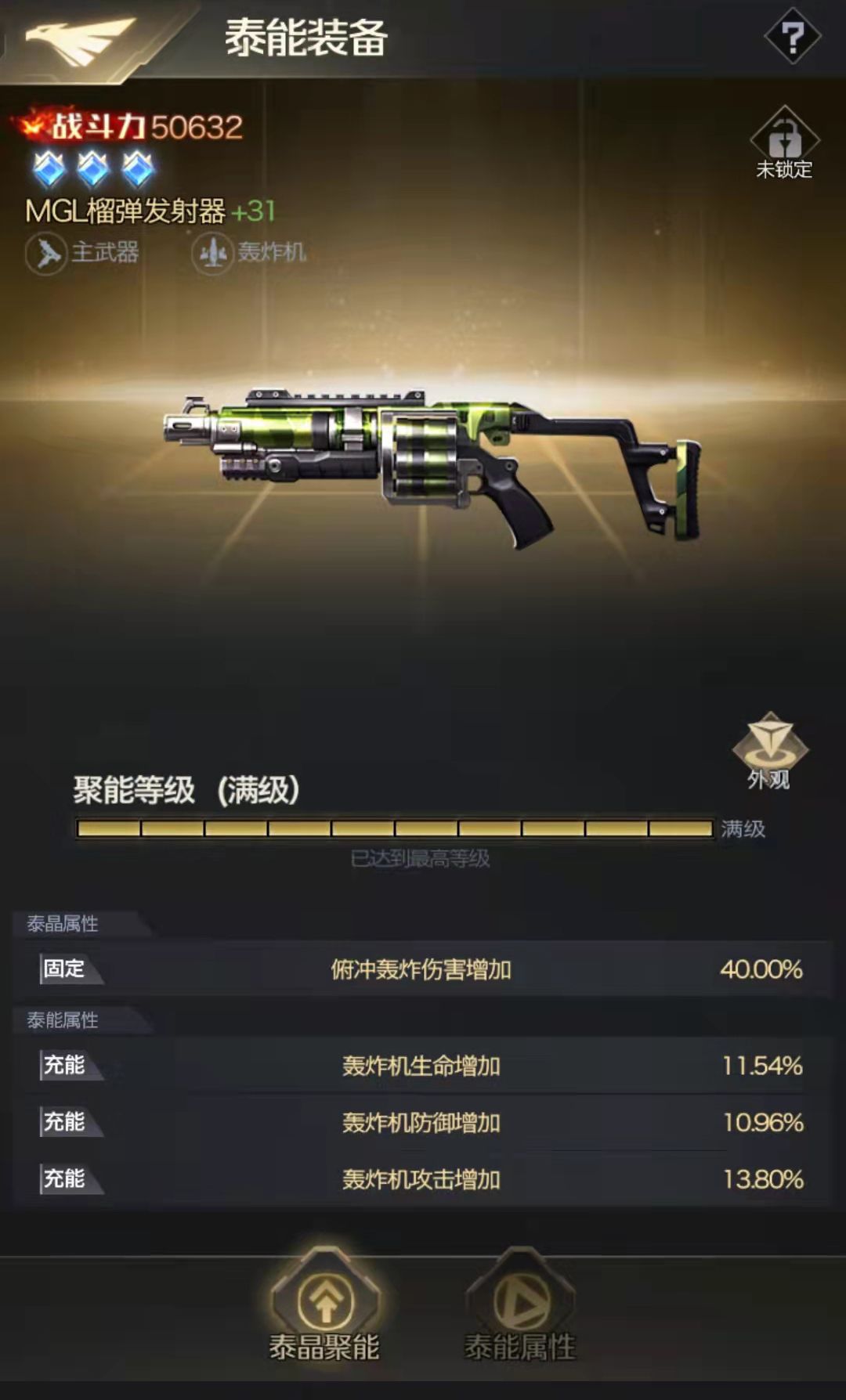 使用突破石强化的泰能属性跟天赋是一样的,越到后面越难以提升,所以建议平均点,别在一条上使劲刷!