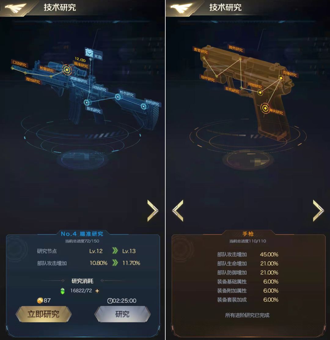 这里要强调两个节点:5星和7星。5星可以解锁12级兵种科技,在属性方面,5星12级兵≈7星10级兵。因此建议在5星时点出12级兵种;7星到8星需要的勋章过于庞大,建议在7星时补“精锐部队”和“超级武装”。