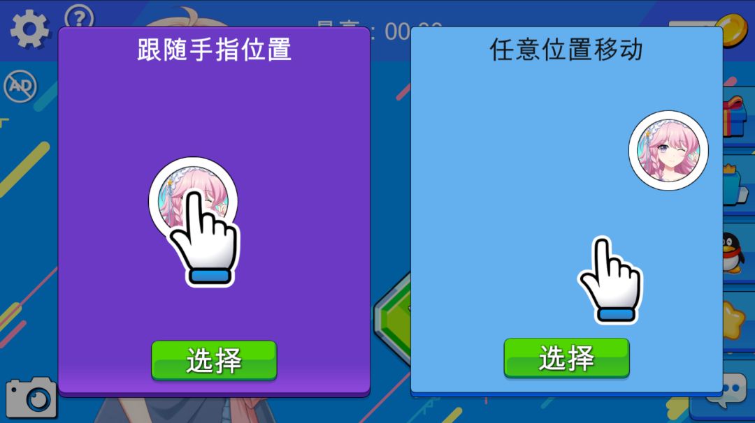 跟随手指移动即是原有模式,可以随时切换
