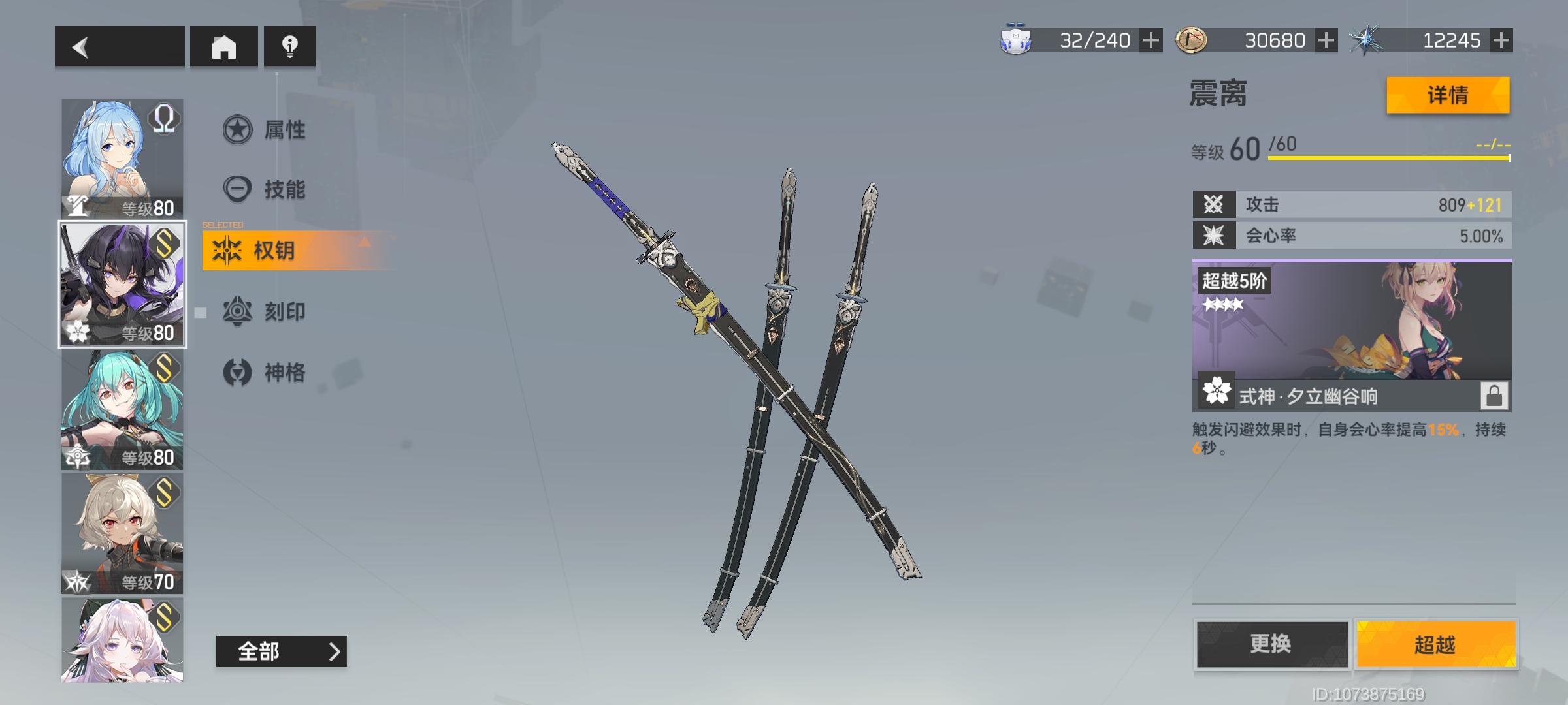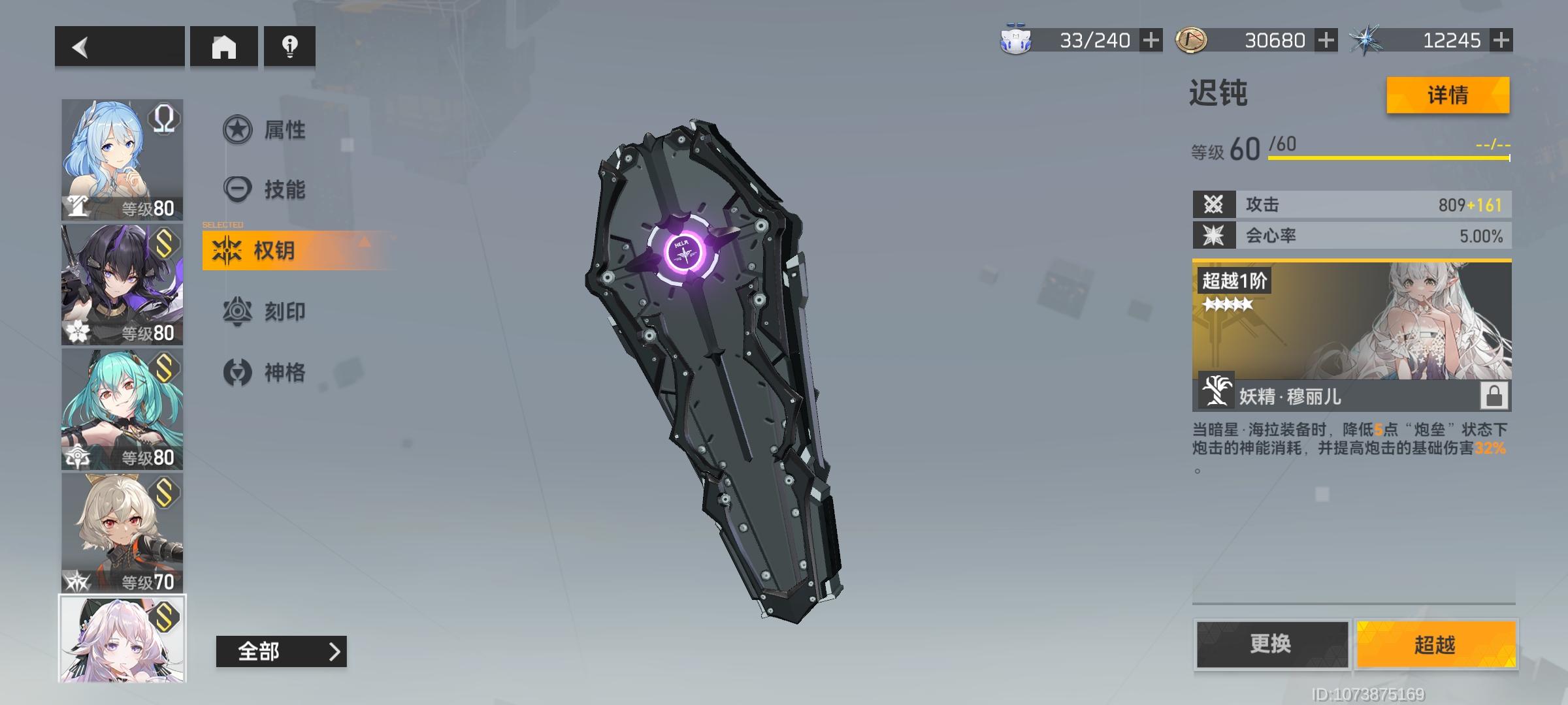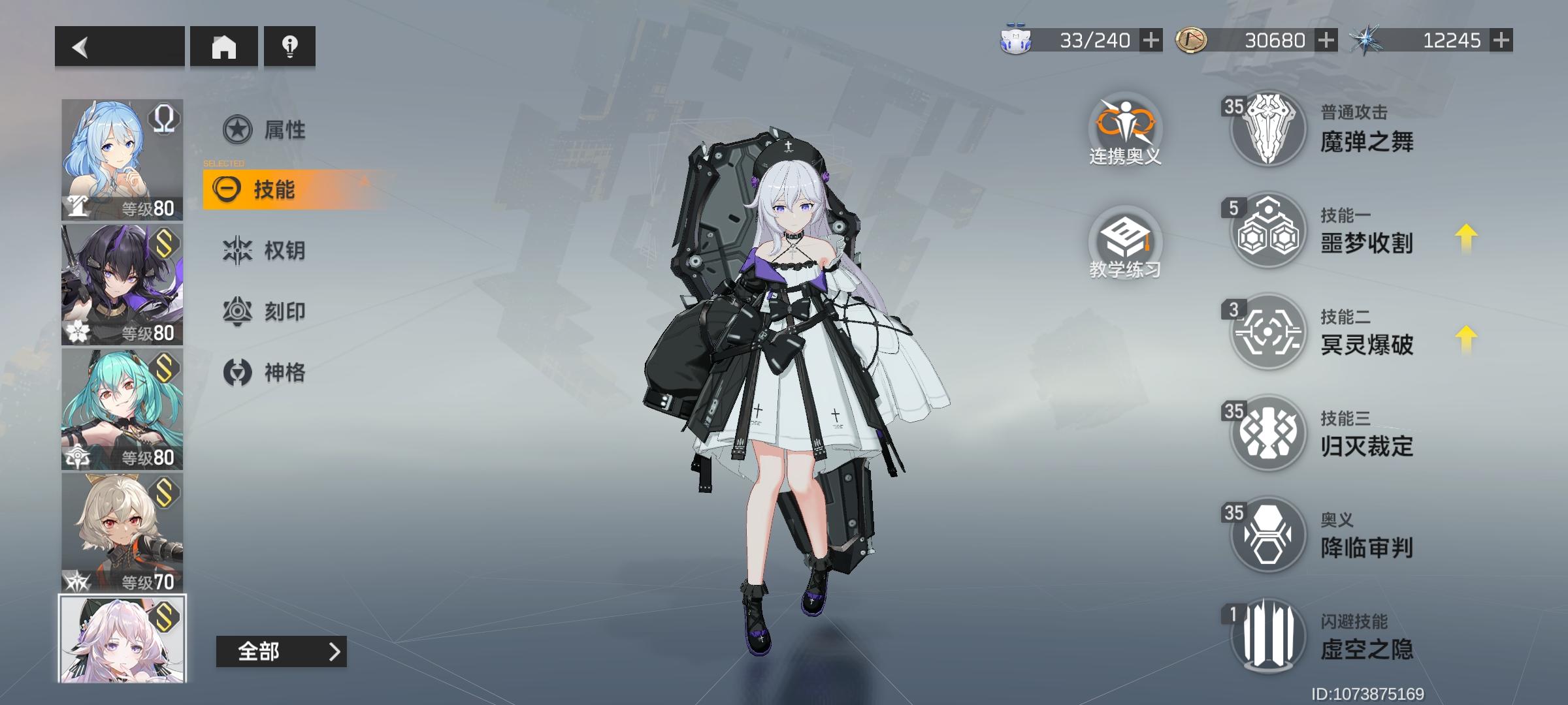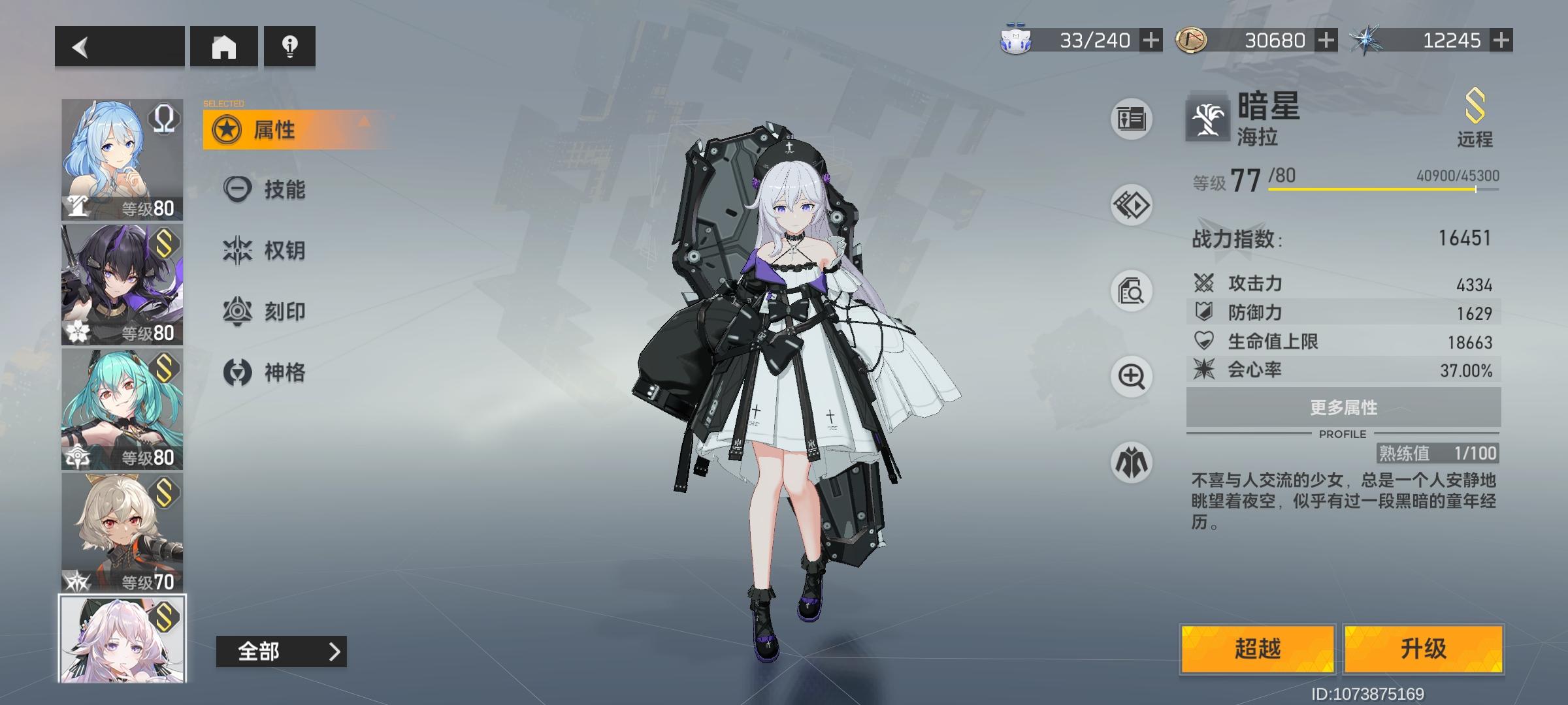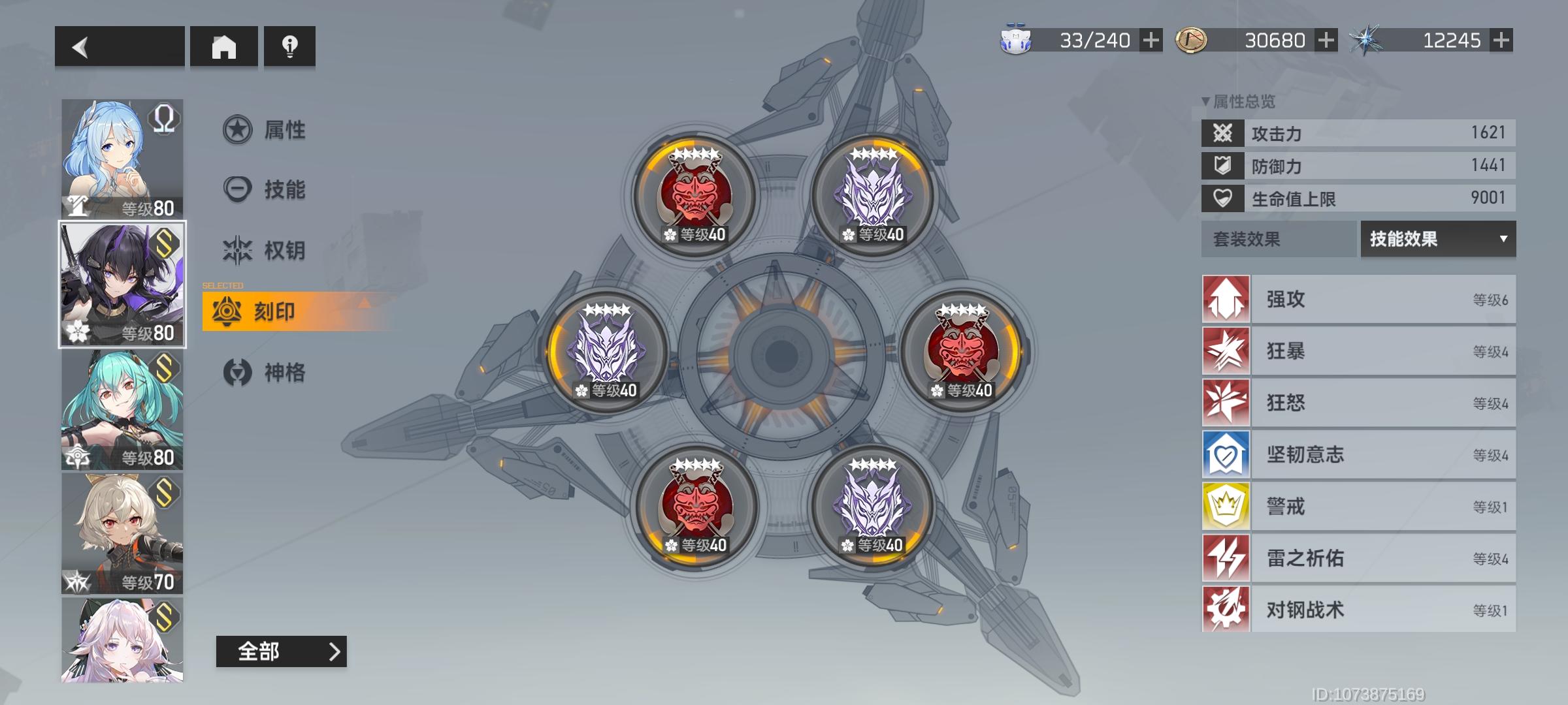 )③S海拉有专武(海拉70抽出的,专武20抽出的)练度残缺,77级,刻印2个完全没有赋能,一个洗的不满意,技能1和2没有拉满,总之非常拉夸吧。