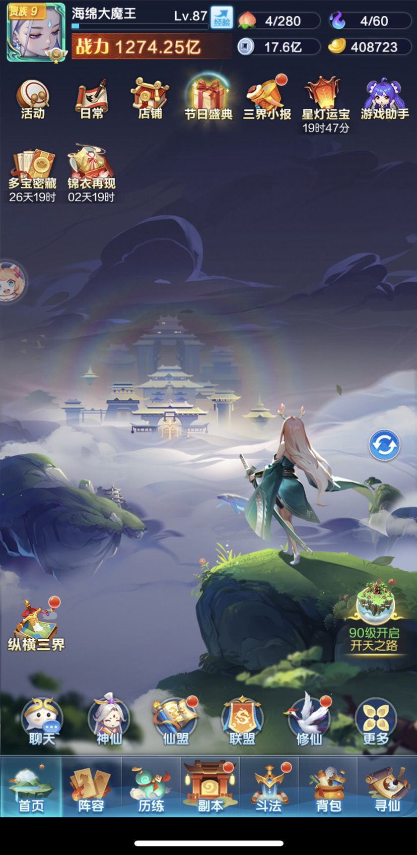 今天是第19天记录下。紫书等仙道升90级再开。