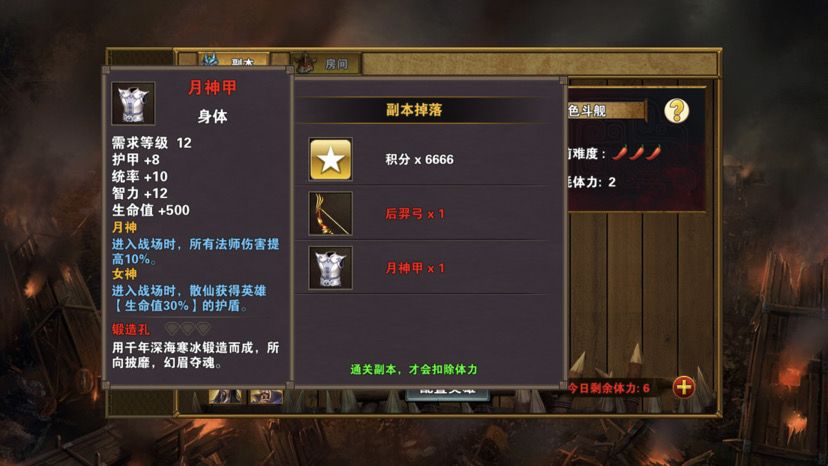 蟾宫折桂副本每周五随机开放,每次消耗体力3点,随机掉落积分、红色装备后羿弓、月神甲,都是不错的装备,特别是后羿弓给太史慈很好用,这个副本总体难度不大,萌新需要找个大佬带着打,不然不好打,大佬负责输出,刘备曹操辅佐即可,推荐曹操使用雌雄双剑、刘备使用倚天剑,出手速度尽量达到10到11,尽量点亮五技能。这关打法也很多,常用输出太史慈搭配鲁肃,司马懿搭配黄忠,当然还有其他打法。第一关第一关曹操开大鞭策太史慈(输出太史慈、鲁肃)或者司马懿(输出司马懿黄忠),刘备激将鲁肃(输出太史慈鲁肃)或者司马懿(输出司马懿黄忠),第二关一般是第三回合撒网,第四回合抓兔子,第三关曹操开大鞭策太史慈或者传送太史慈贴身大树都可以(太史慈装备镯子,输出太史慈鲁肃)或者鞭策司马懿(输出司马懿黄忠),刘备开大激将鲁肃(输出太史慈鲁肃)或者司马懿黄忠均可(输出司马懿黄忠)。一般一到两回合都可以过关,装备属性如截图所示,附视频、截图,没有大佬装备截图见谅。说明:第一关boss有特殊被动技能会把自己受到的技能伤害随机反馈给对面人员,所以如果一回合打不死boss,第二回合如果不能确定一招秒杀就使用普攻。最后㊗️大家都能得到三孔装备!