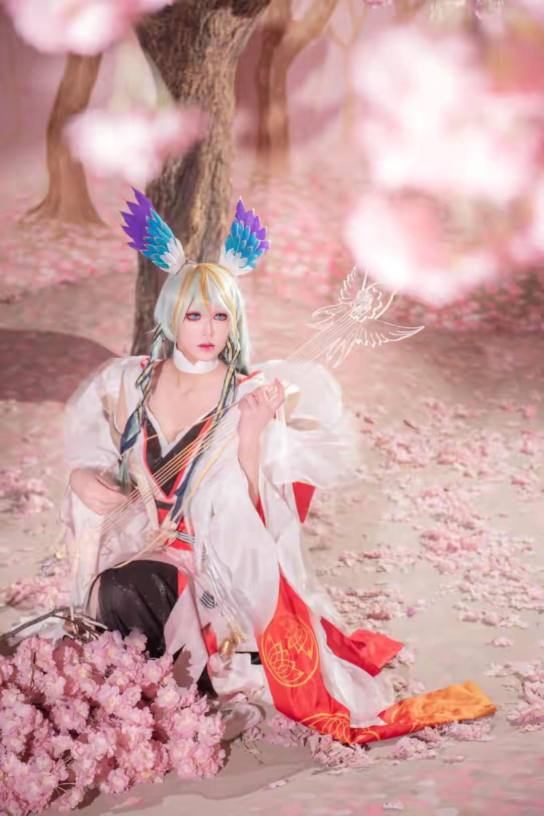 今天给大家分享的Cosplay作品cos的原型是来自手游《阴阳师》中的紧那罗形象