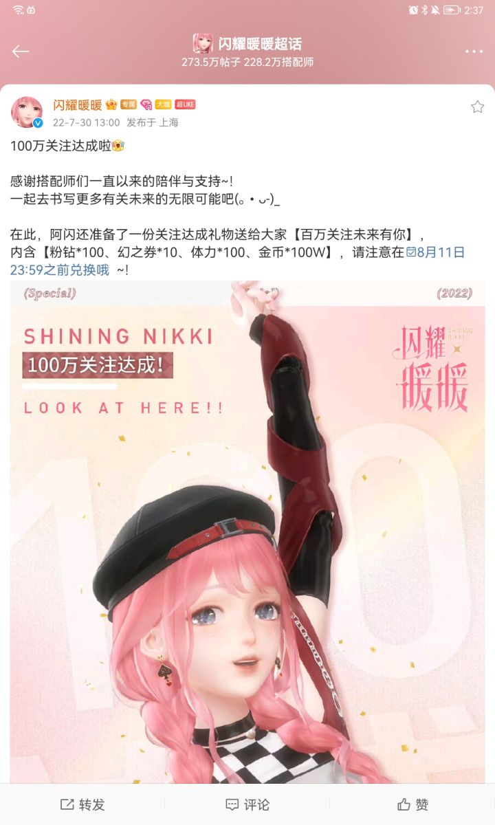 百万关注未来有你(叠微博粉丝百万了,之前的兑换码过期了,我清理了)