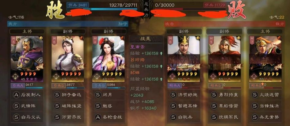 总结:对于平民玩家来说,这个队伍的门槛并不高,皇甫嵩基本上可以稳定满红,貂蝉也是稳定拿到的,吕玲绮这个武将也并不难抽,基本上到了PK赛季都能达到个2-3红的水平,剩下的战法获取难度一般,感兴趣的玩家可以组一套玩玩!