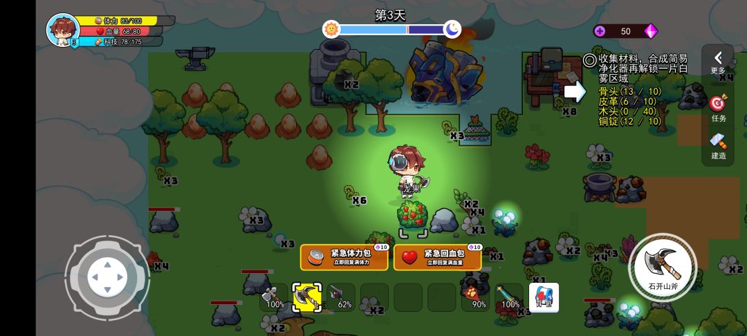 植物矿物刷的太密集太快有点卡动物太少皮革不够用