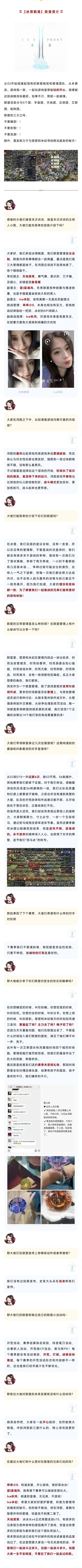 本次小图的采访对象就是一个任风吹雨打,仍自傲立的联盟。还请主公们前来同小图一起深入了解一下本次的访谈主角——【冰锋戰盟】。