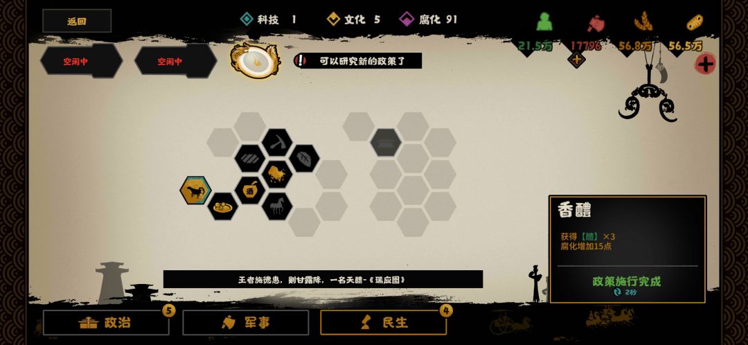 优势:战斗减少2次,威望依靠政策,占卜,名臣来获取