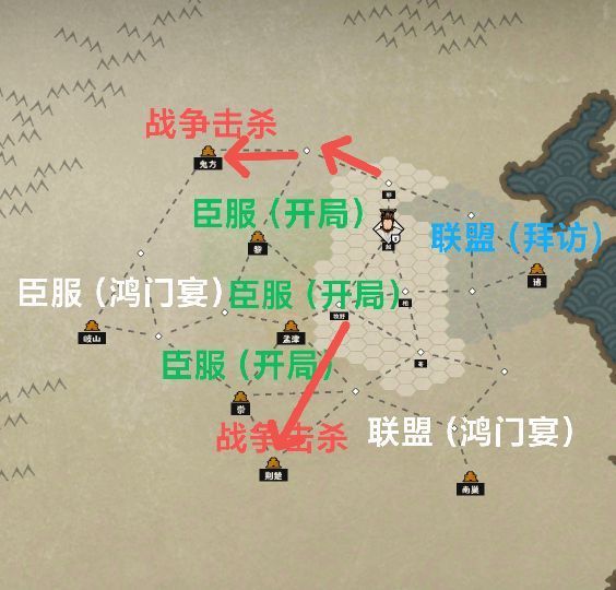 所以目标很明确,解决剩下五个国家,就可以完成咸服诸侯,这里我们俩手抓,一手抓外交,一手抓战争