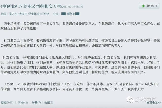 同理,吴刚一度会亲自带实习生,并在博客中分享培养实习生的经验。但在具体项目中,有人却表示实习生的参与拖慢了产品研发的进程。