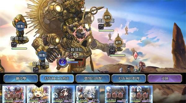 最终BOSS:①灾难弥勒:无弱耐,锁血50%。HP50%以上会召唤苦难地藏×1+劫难地藏×1,HP50%以下会召唤苦难地藏×2+劫难地藏×2,倒计时为0时全体强力攻击+封印②苦难地藏:弱斩突以外,耐斩突,反击斩突,斩突攻击时回复HP10w,倒计时为0时全体MP部分扣除。③劫难地藏:同苦难地藏,把斩突改为打魔。