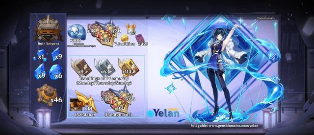 等级突破消耗材料:遗迹巨蛇的新材料46个,星螺168个,若陀龙王掉落的鎏金之鳞18个,以及愚人众掉落的徽章若干。这次夜阑的突破材料算是友好的了,没想到竟然会用到了老周本若陀龙王的材料,准备入手夜兰的玩家可以提前准备了。