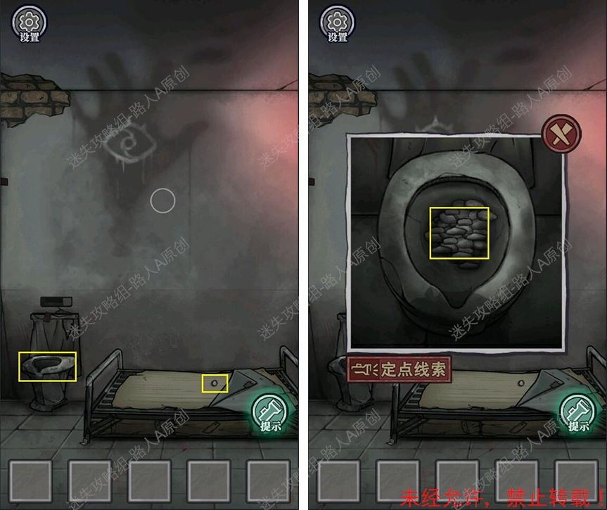 1.床上拾取【硬币】,马桶里拾取【小石块】。1.1