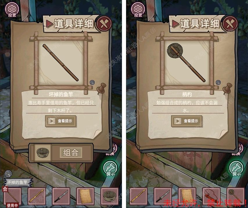 49.组合【坏掉的鱼竿】和【木盆】,得到【柄杓】。49.1