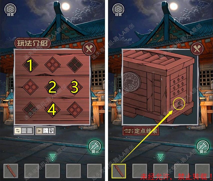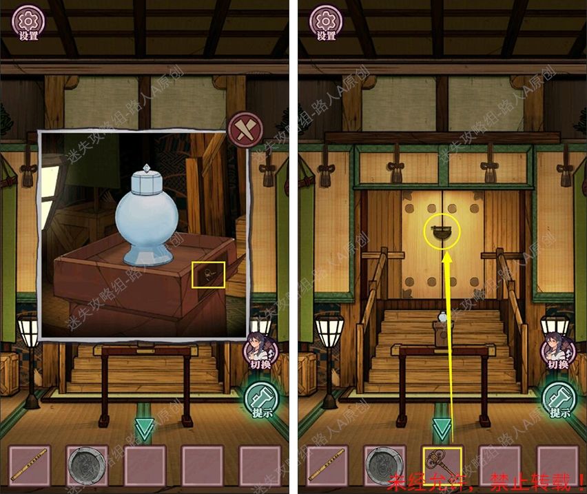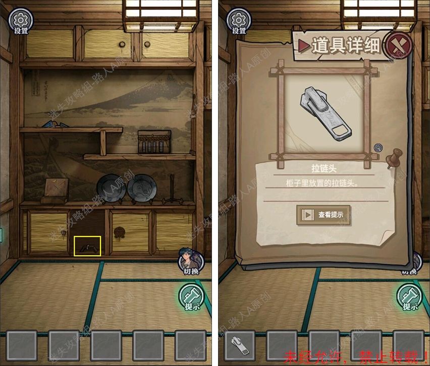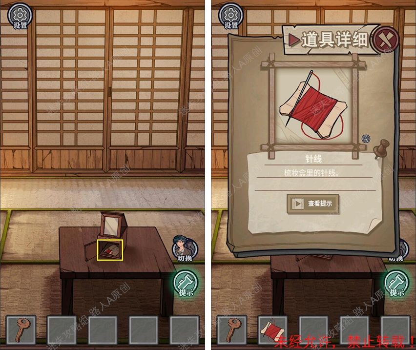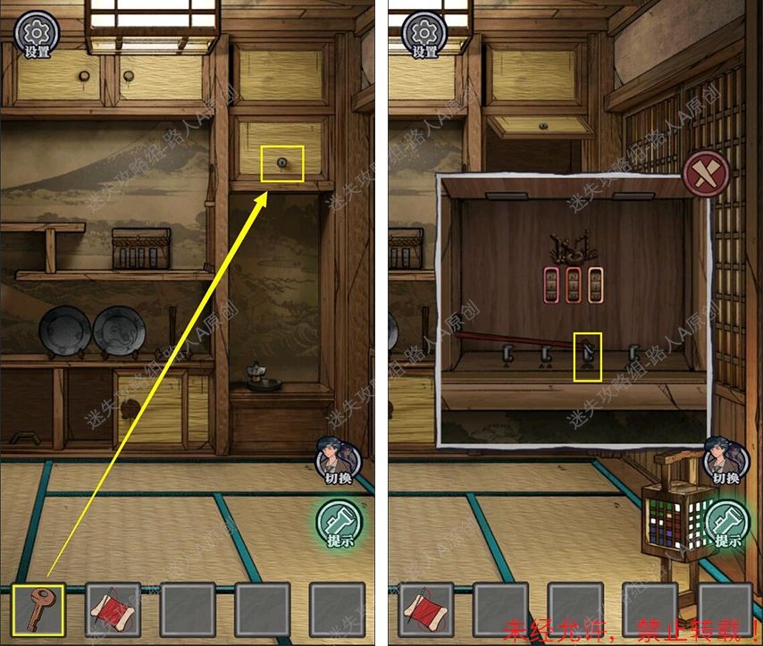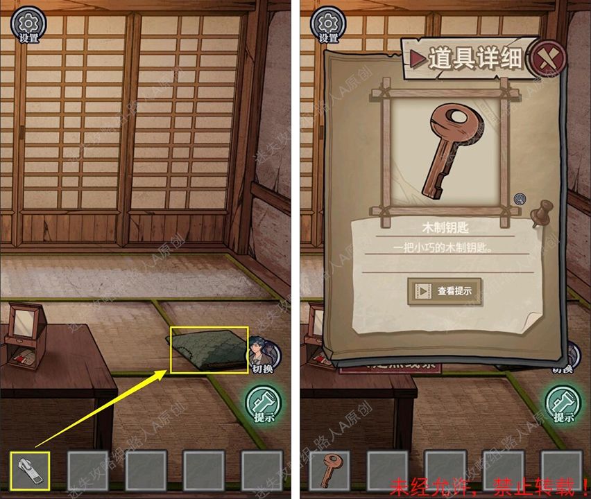 23.完成钱箱小游戏,将【竹签】插入钱箱侧面的钥匙孔,得到【钥匙】。23.1