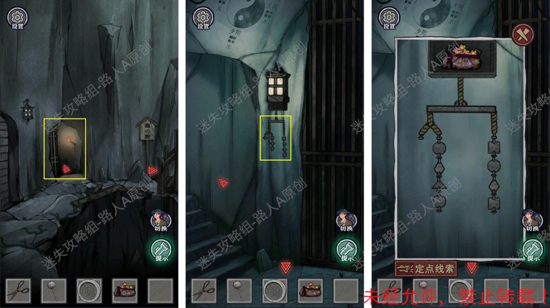 32.用【钥匙】打开柜子,将绳子系在第3个铁扣。32.1、32.2