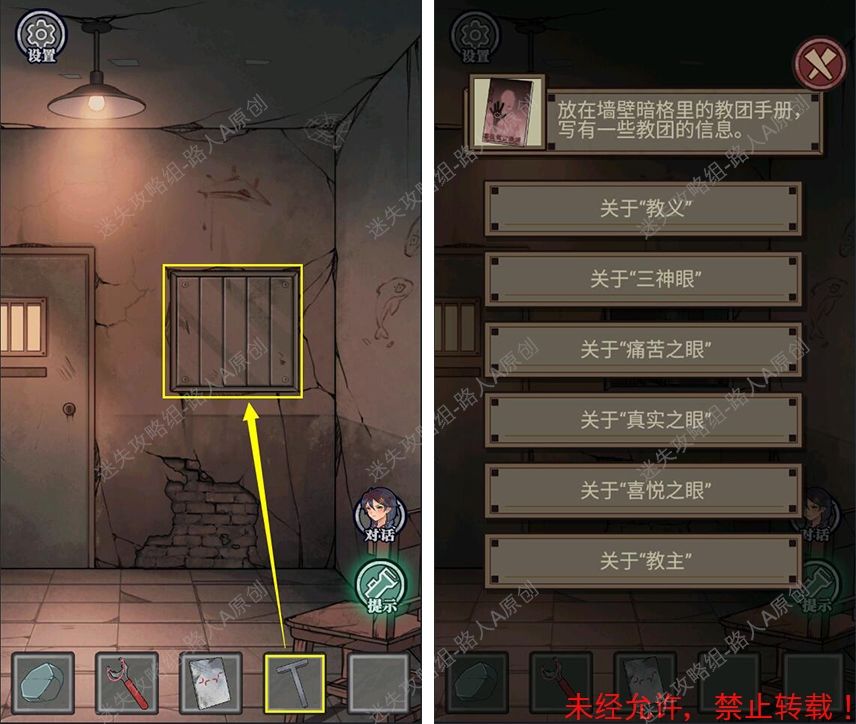 10.用【T字扳手】拆卸墙壁的金属板,查看教团手册。10.1