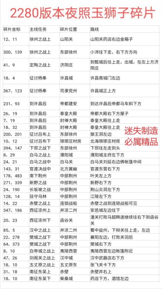 【精品攻略】夜照玉狮子碎片位置详解(最新版本)
