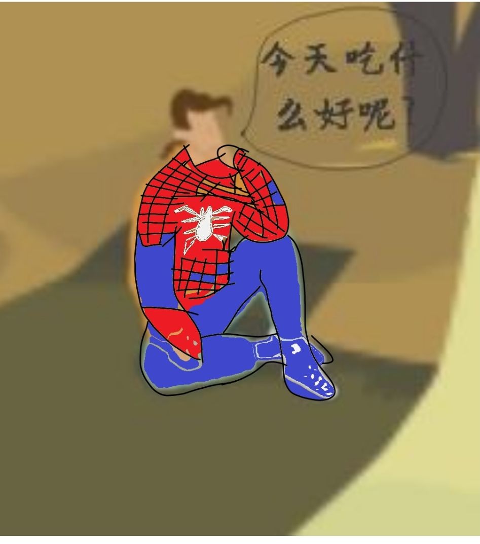 忽然想到托尼坐在大厦上吃甜甜圈的场面,和富哥这个动作挺搭的诶哈哈哈哈,附带一只蜘蛛富。