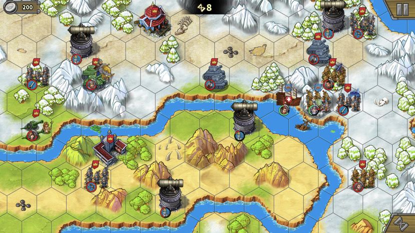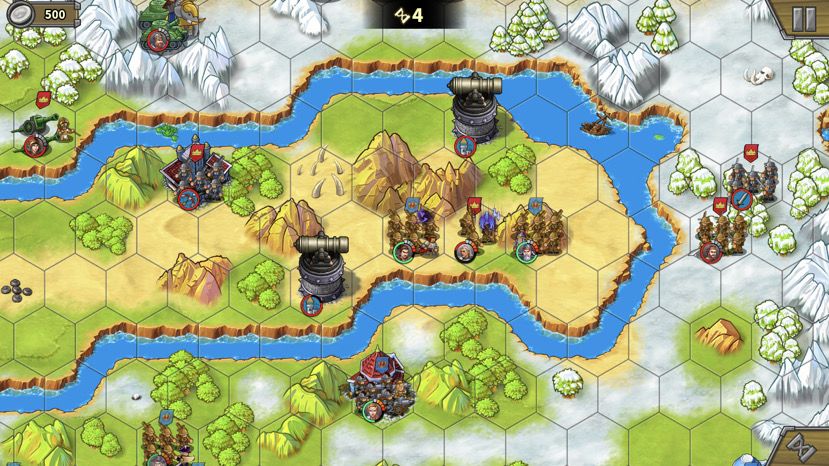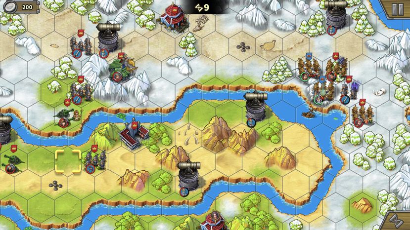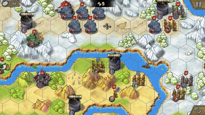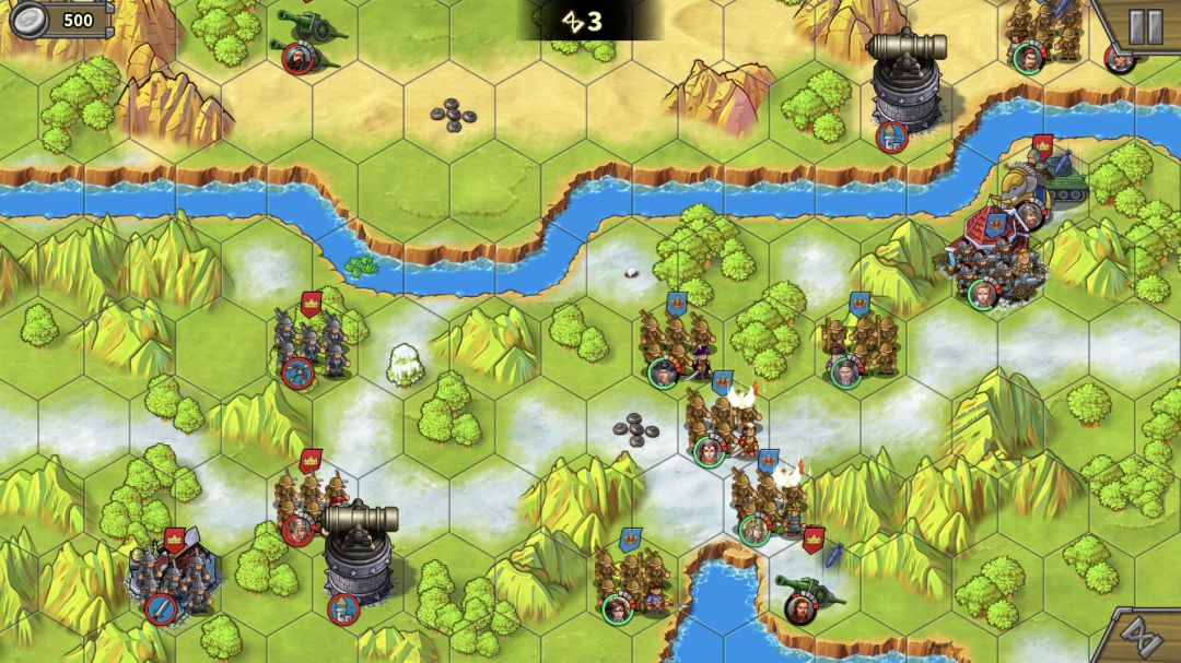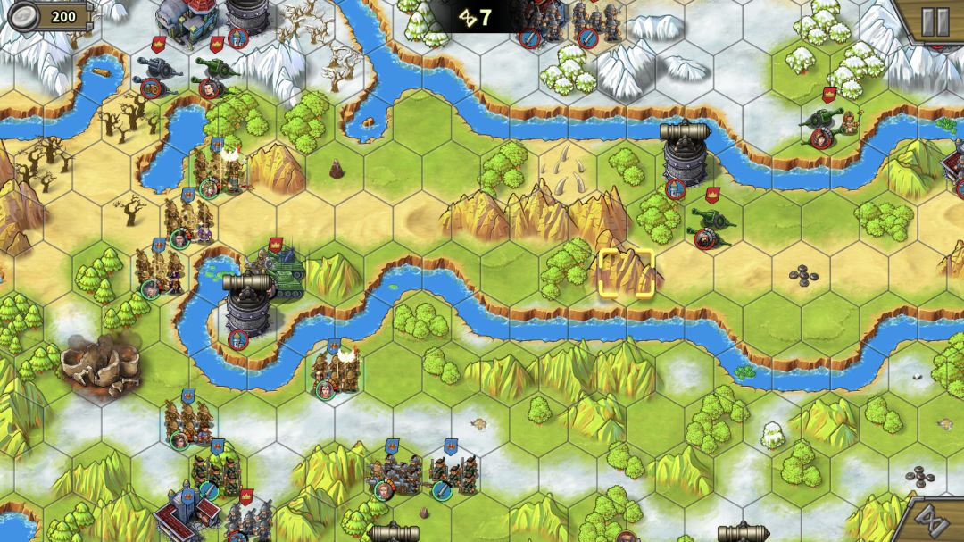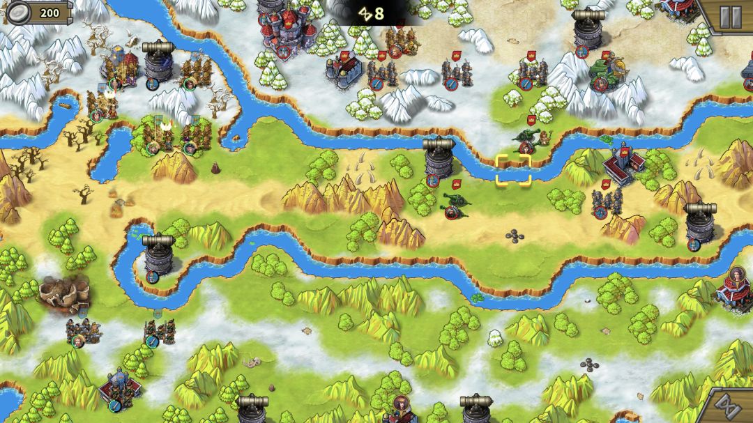 下路占领兵营后上减费公主,造步兵,这关我方没有经济收入,500大洋可以造3个步兵。步兵跟着大部队走,作用是抗伤害(炮塔、无名炮、艳后)、占领中间岛上靶场。注意,造的步兵没法下河。(Tips:这关敌人也不会无限造兵,敌方城堡被摧毁后也会失去经济来源,后期不用担心房子不及时占领又造兵出来)