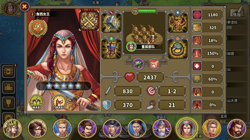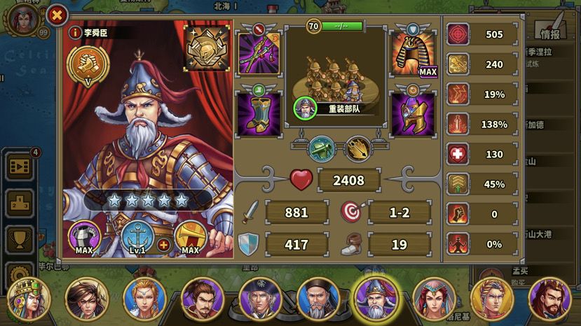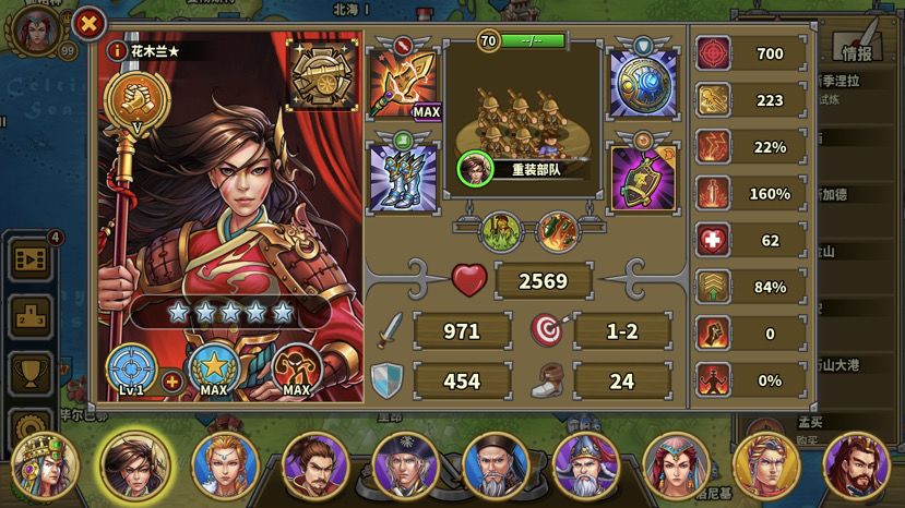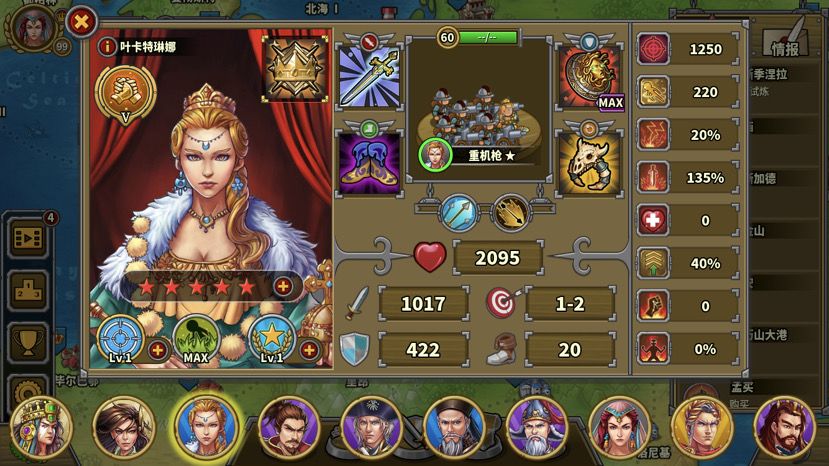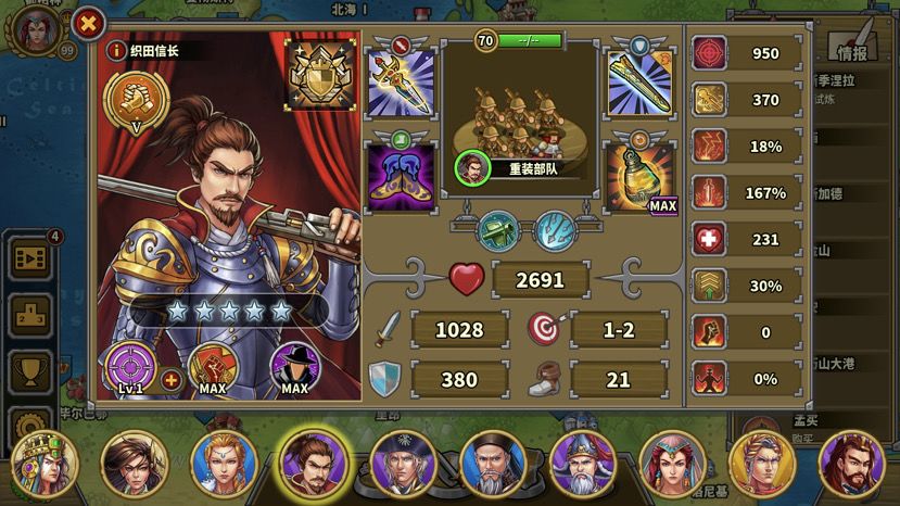 第一回合,roll一个好的开局:织田打岛上无名弓不被反击,要是能暴击就更好了,没达成可以右上角重开。叶卡第一回合可协助攻击岛上无名弓。