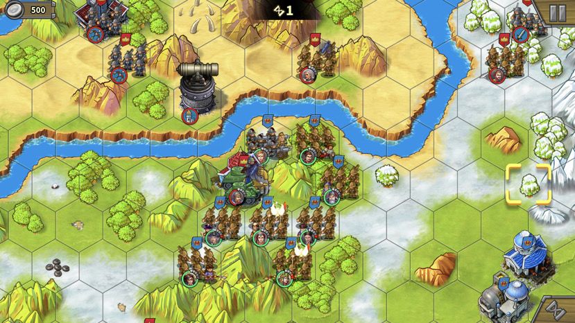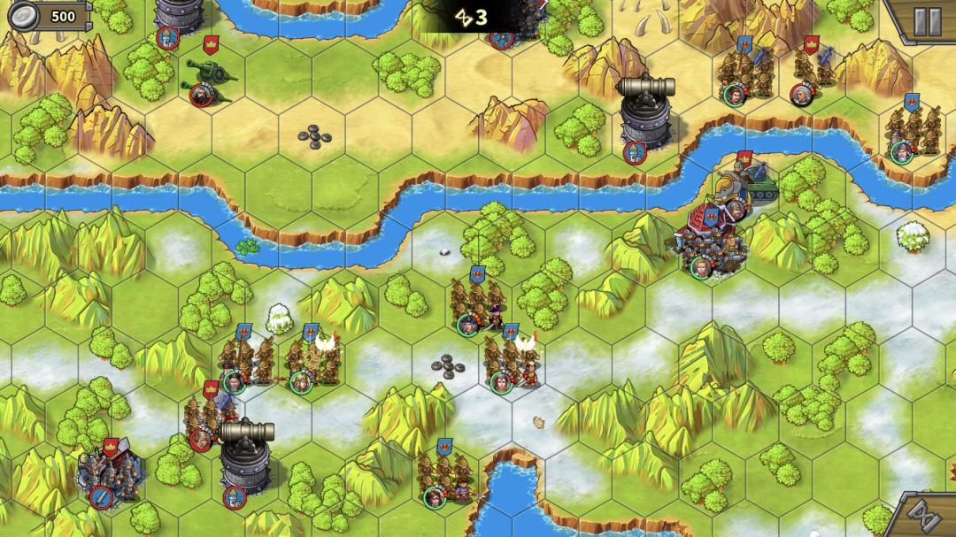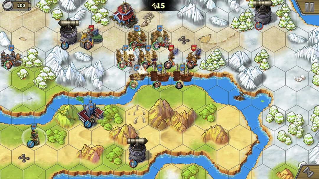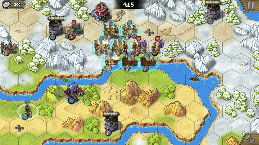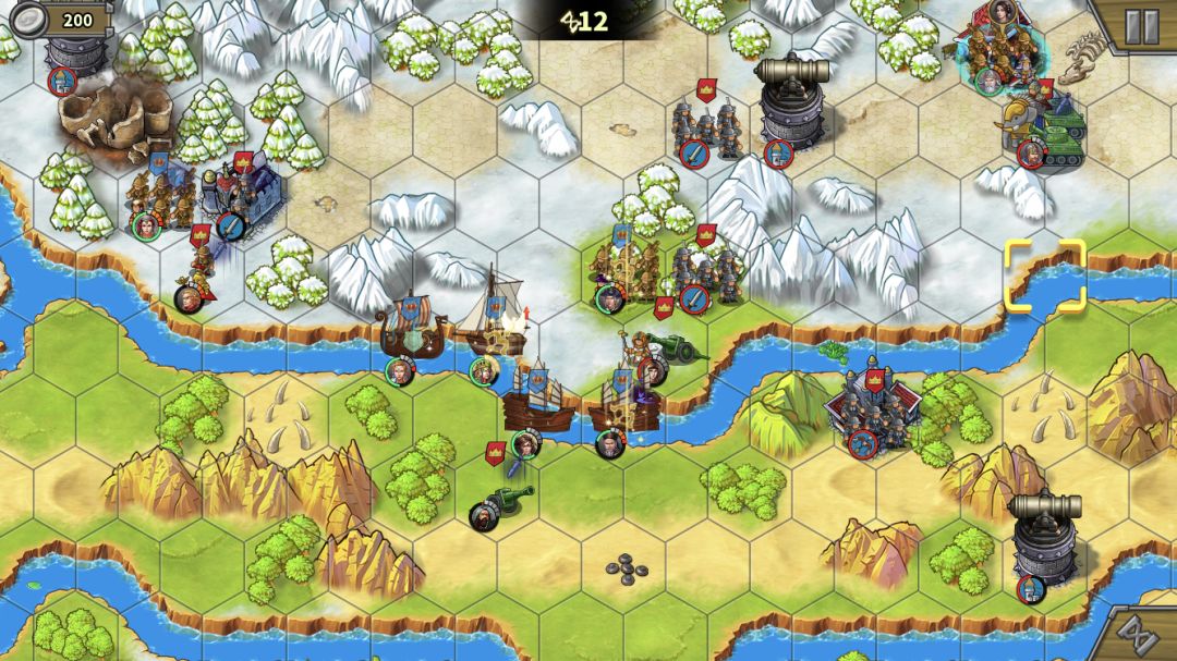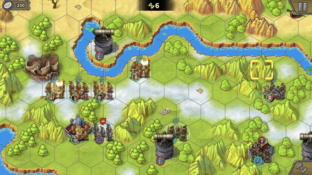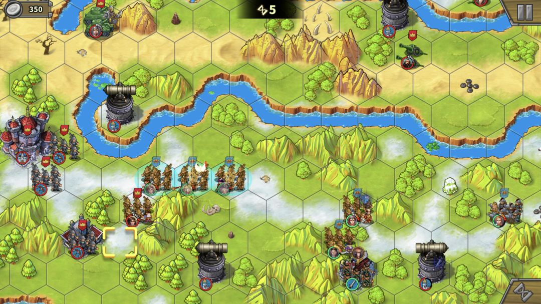 左上的无名炮比较脆,不需要所有人去,派个人占工厂,其他人尽量贴着河道站,这样下个回合就可以直接下河了。别忘了打炮塔攒怒。步兵和叶卡往中间岛上移动。