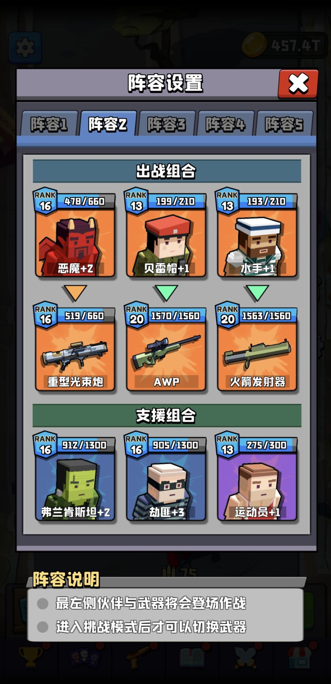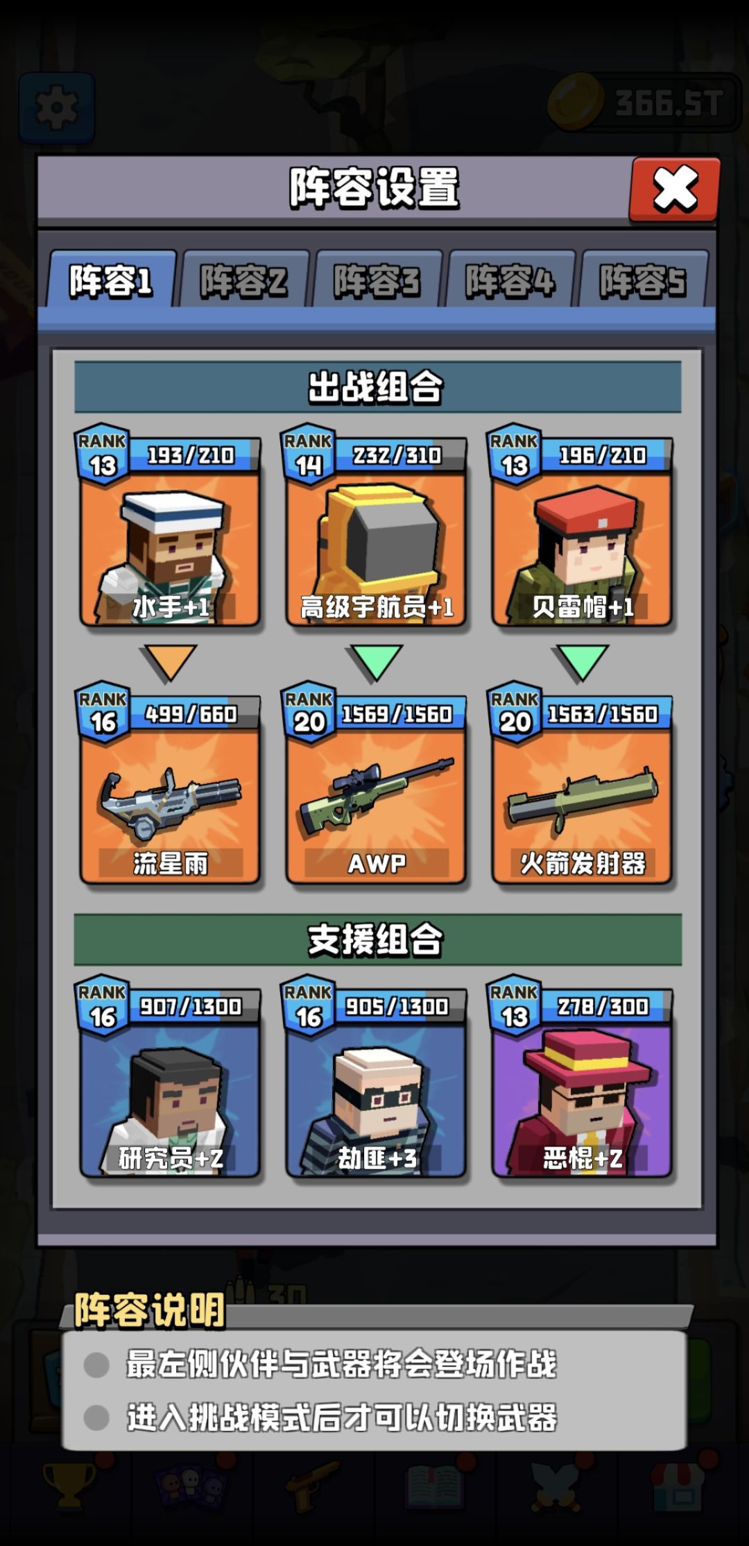 其余的角色可以根据自身的人物情况更换,可选人物有恶棍、贝雷帽、劫匪、水手、恶魔。每个人的人物等级武器等级都不一样。各个人物是换哪一个伤害高还需要根据自己的情况实践后确定。