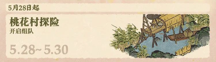 就以本期活动为例,图片上标注的5.28~5.30就是可以进入桃花村的时间,3天内没有找到队伍,或者加入队伍但队长没有点开始的话都会错过本期活动。