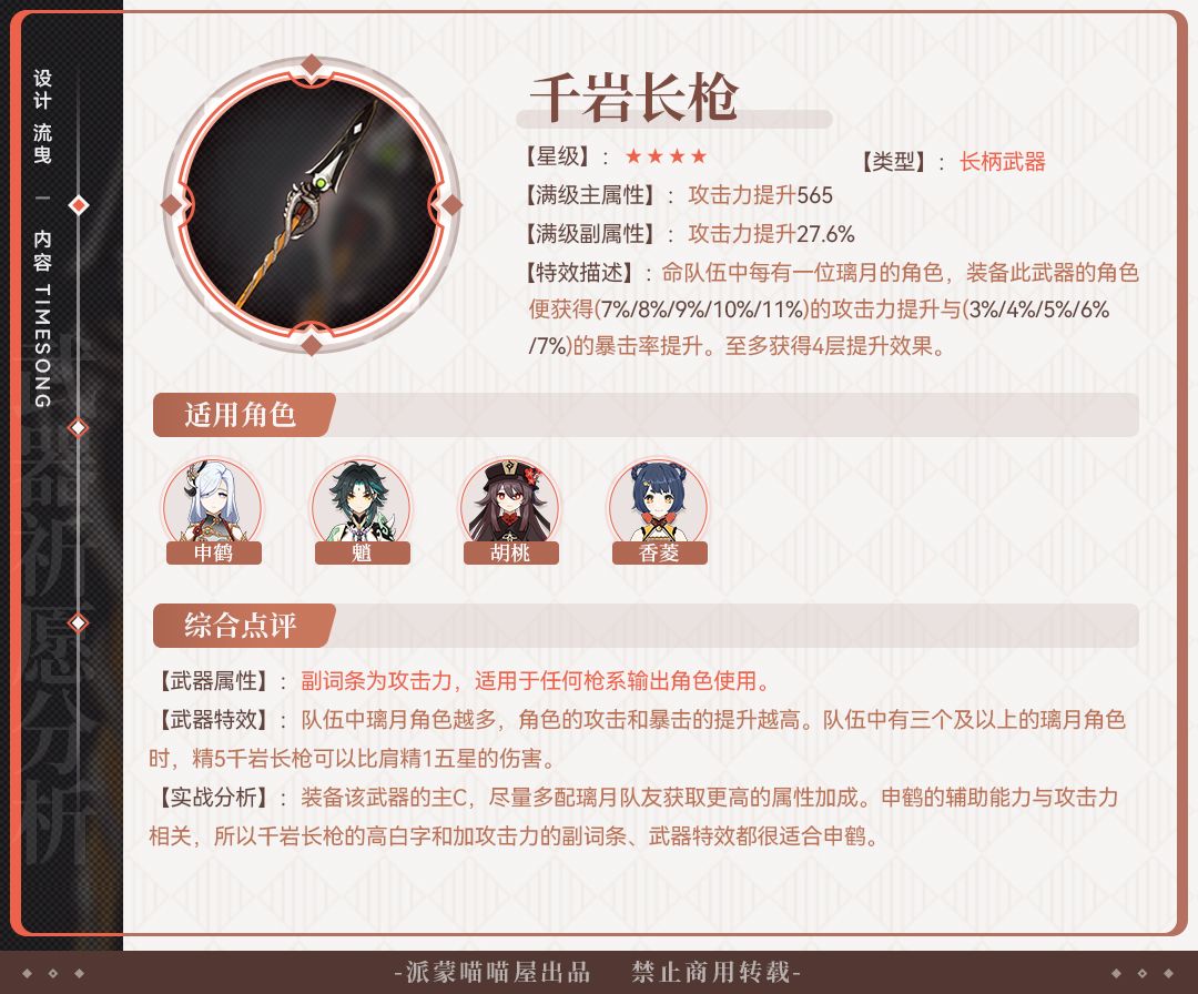 四星武器都是大家的老朋友了,除了昭心外都有一定的就业岗位,如果抽到了可以给对应角色携带。