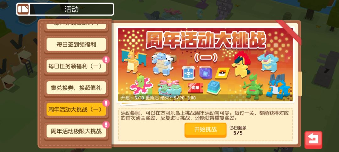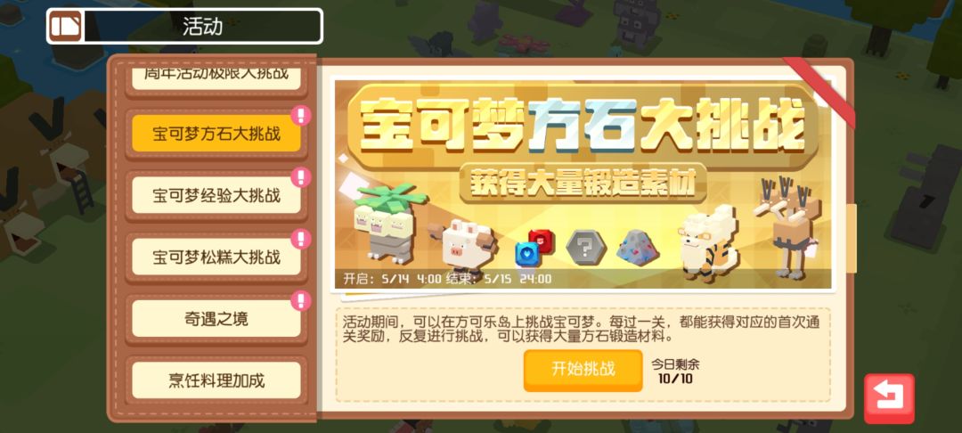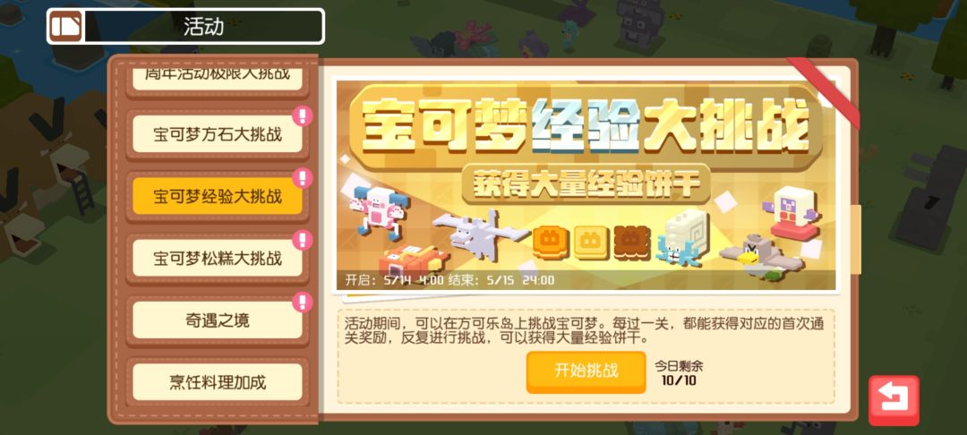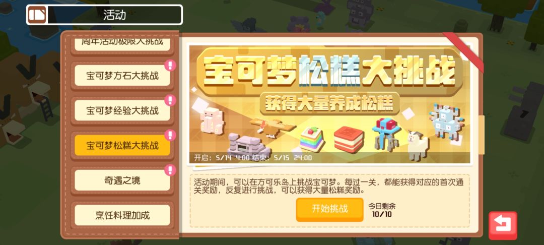 5.14——5.15松糕挑战,可获得大量宝可梦养成材料