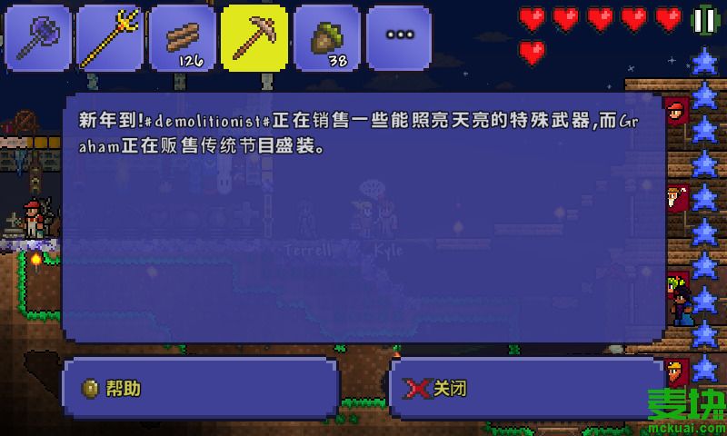 4、向导会使用木弓和箭来防御靠近的敌人,肉山后箭会升级为烈焰箭。