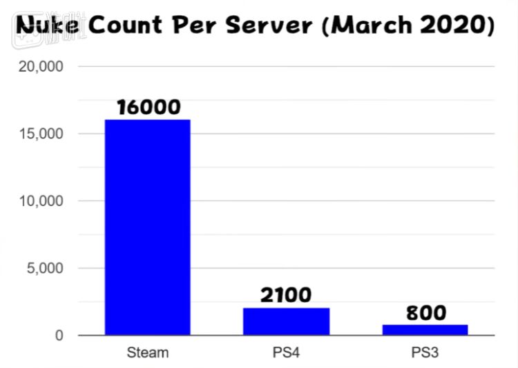 他们将PS3平台定为达成“无核结局”的目标。因为PS3当时已有13年的历史,没那么多玩家,核弹数量也比其他平台少得多。2020年3月的数据显示,Steam服务器上存有约16000枚核弹,而PS3服务器仅有800枚。