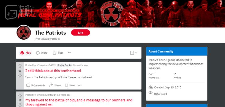 仅在游戏发售后的第一个月,光是英语区的《合金装备》玩家们,就为了“无核结局”特地结成数个团体,还纷纷成立Reddit论坛子版块宣传自己的主张,堪比《合金装备》剧情中迎来行业春天的无数雇佣兵组织。