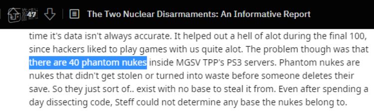 “幻影核弹”存在于每一个游戏平台,在游戏内没有任何解除它们的办法。正是因为它们的存在,服务器的核弹总数一直维持在40枚以上,合法的“无核结局”自然不会实现。