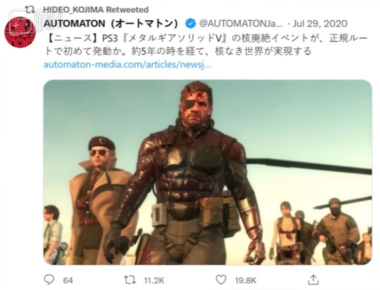 “反核帮”与Hung Horse一夜之间成了英雄,赢得了全世界《合金装备》粉丝与游戏媒体的吹捧,就连小岛秀夫也转发了相关的报道。