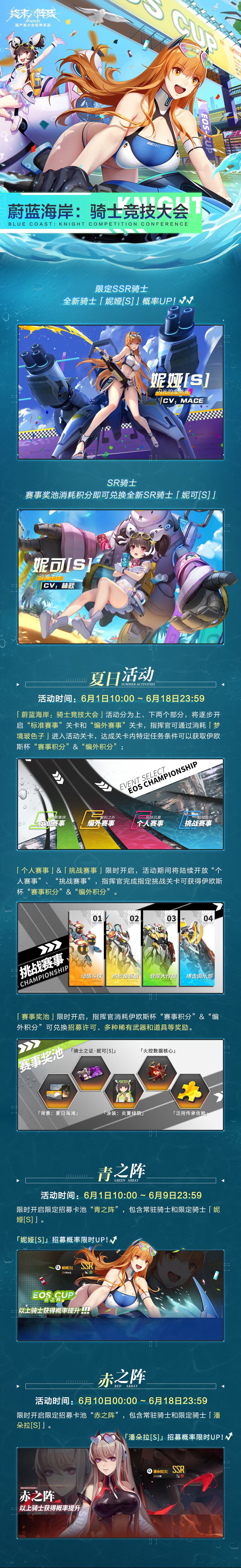 「蔚蓝海岸:骑士竞技大会」活动上下两部分将分别开启限定招募「青之阵」和「赤之阵」。