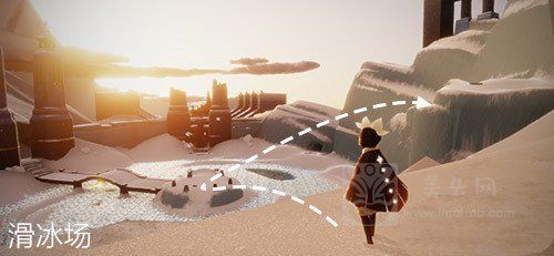 5、倒立先祖重新进入霞谷,来到滑冰场,然后这个时候已经收集到四个先祖了,所以就可以来到左边的这个城堡入口了。