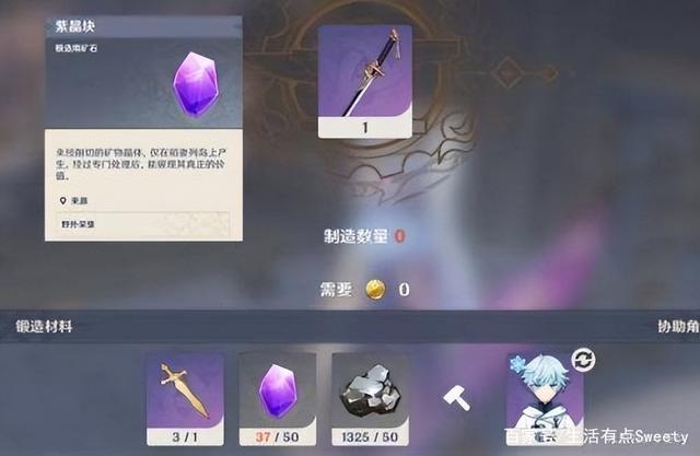 紫晶块在平时除了可以锻造魔矿,还可以用来锻造拥有稻妻特殊特点的五把武器