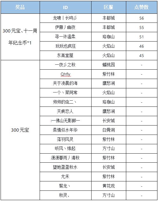 【活动奖励】从评论中随机选取15名符合要求的上仙献出300元宝,点赞数量最多的5位上仙则可以获得300元宝加造梦十一周年纪念币*1