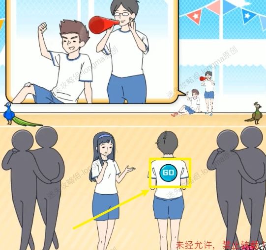 35.点击害羞男孩身后的【GO!】。35