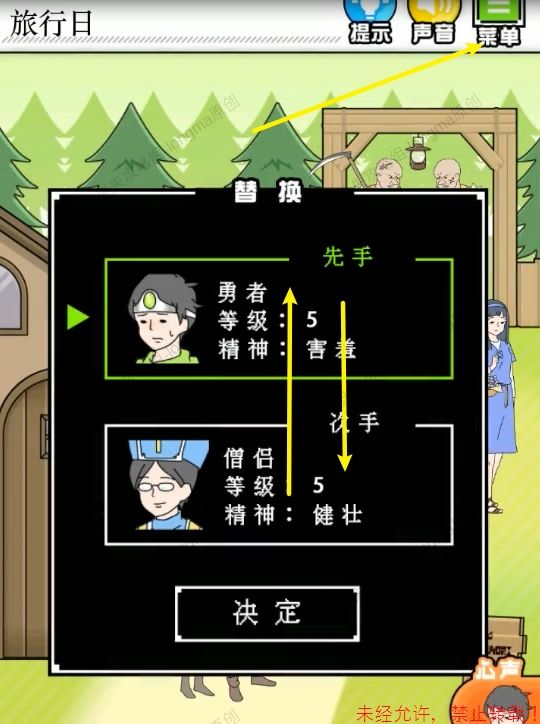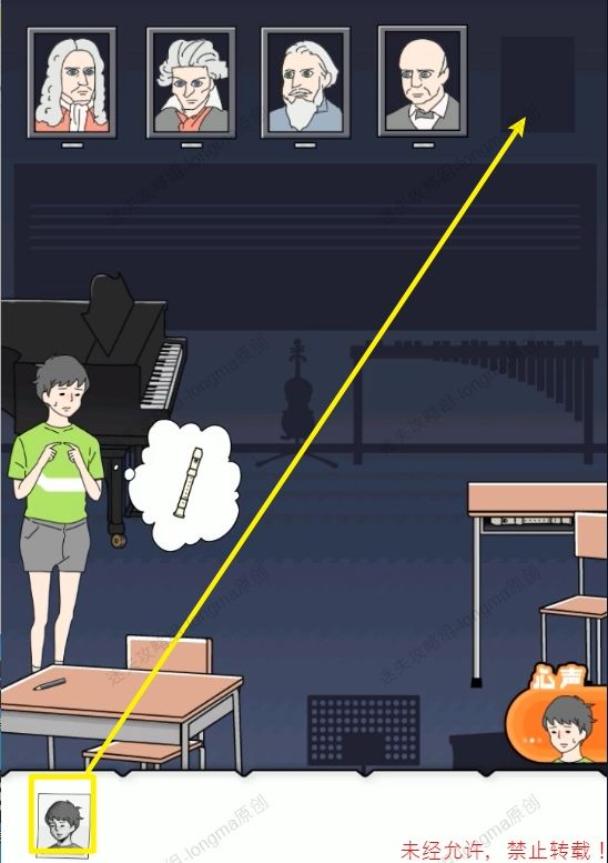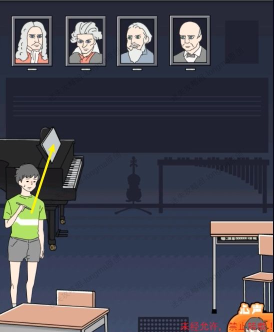 67.使用被绑的人替换指挥音乐的人,得到【害羞男孩】,将【害羞男孩】放在空位上。67