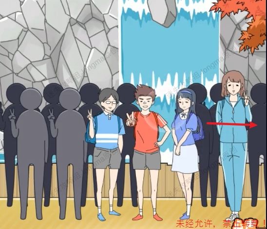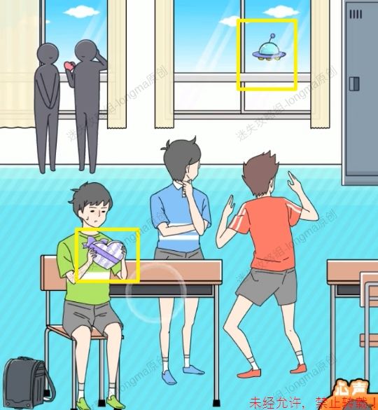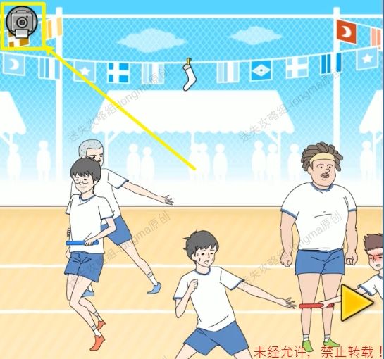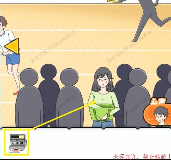 34.拾取绳子上的【喇叭】,将【喇叭】交给后面喊话的男孩。34