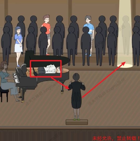 66.注意灯光暗下前害羞男孩和指挥家的脚,打开钢琴盖,得到钢琴中被绑的人。66