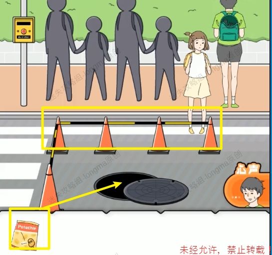 44.将【零食】放入下水道口,工人出来后,盖上井盖,清除所有路障。44