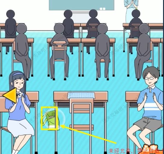 41.拿走课桌左边袋子中的【便当】,将【便当】交个左边场景中红衣男孩。41